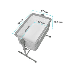 The NESTE UP co-sleeper cot is not only a classic co-sleeper bed for the parents’ bed. It is a multifunctional product – it can be used as a standalone baby cot, as well as a replacement for a travel cot. The NESTE UP is designed for parents who want to have their baby close to them and at the same time want to improve their sleep quality. It's also deliverance for nursing mothers whose babies wake up several times a night. With the NESTE UP, you won't have to get up every two hours to feed your toddler – you just need to get closer to the co-sleeper cot to feed your baby comfortably. This multifunctional co-sleeper cot has up to five levels of height adjustment and the angle of the mattress can be set on two levels. The little one has a runny nose and you want to make it easier for them to breathe? Just lift the mattress slightly! The NESTE UP has a roll-down side wall that transforms it from a stand-alone baby cot into a co-sleeper cot. A mattress and a sheet are included.