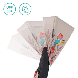 - Foldable hood, that protects the child from the sun and wind (waterproof, with UPF 50+ filter).