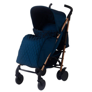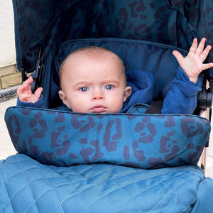 This stylish blue leopard stroller from Dani Dyer forms part of her Cherish collection at My Babiie and combines the style and function you expect from a super talented mum. Tough enough to take everywhere with you and use every day, the lightweight aluminum umbrella fold stroller is packed with features to make using it as comfortable for you and your little as possible. Suitable from birth, the seat reclines right back and has adjustable leg support so your little can sit, or lay back in total comfort, shaded from the sun and elements by an extendable 3 position UPF canopy. Suspension all round and single front wheels means the ride is super smooth, and adjustable handles mean you can push in comfort too. The basket is large and there is a handy pocket at the back of the hood for your phone (or snacks!), and a viewing window so you can maintain a visual of your precious cargo. This lightweight stroller comes with a free cozy footmuff, cup holder, and rain cover so that we have you covered if you are strolling and it starts to rain!